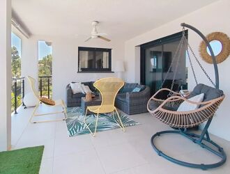 La terrasse couverte de 48 M² offre une vue plongeante sur la piscine : elle est l'endroit rêvé pour profiter des belles journées et des soirées rafraîchissantes avec la brise du bord de mer à proximité.