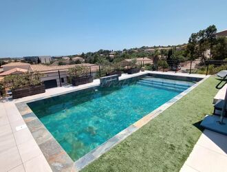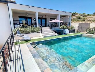 Située sur les hauteurs d'un village de 1100 habitants doté des principaux petits commerces de proximité et d'un cabinet médical, cette villa "grand luxe" offrant une vue panoramique à 180° sur la mer a été construite au cours de l'année 2000 et vient d'être revisitée dans un style épuré et raffiné . Elle est située à 5 minutes des plages de La Franqui et de Leucate, à 37 km de Narbonne, à 25 km de Perpignan et à proximité de la route départementale (Ancienne RN9) reliant Narbonne et Perpignan, de son accès à l'autoroute et à 20 minutes de l'aéroport de Perpignan.