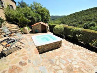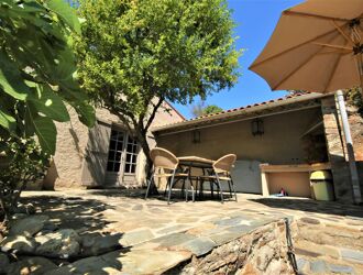 Rénovation de haut de gamme pour cet ensemble de deux maisons de caractère indépendantes trônant sur un même parc cadastral arboré de 3 718 M² et situées sur les hauteurs de THUIR , dans les Aspres . Dominant la vallée et offrant une vue panoramique sur les montagnes , ces deux maisons situées dans même hameau privé intégralement végétalisé et en communion avec la nature se partagent un grand espace extérieur piscinable, dallé en pierre et végétalisé , exposé plein sud et dont les jardins respectifs pourraient être à nouveau privatisés. La 1ère Bâtisse constituée d' un ancien chai du 19 ème siècle en pierre déploie une surface habitable de 155M² environ et comprend: un salon avec cuisine équipée, un deuxième salon avec cheminée, une deuxième cuisine tte équipée Gaggenau, une buanderie, un wc indépendant, 2 chambres , une salle de bains, deux salle d'eau, un dressing . La 2ème Maison de surface de 85 m² et de plain pied comprend deux chambres, une salle d’eau, un salon avec poêle à bois et une cuisine ouverte donnant sur une terrasse privative. Le jardin piscinable est aujourd'hui pourvu d’un jacuzzi, d’un garage fermé et d'un parking intérieur . Cet ensemble immobilier est idéal pour deux familles ou pour une résidence principale avec des revenus locatifs à l'année ou saisonniers pour la deuxième plus petite maison . L'environnement est exceptionnel : ce bien est réservé à des personnes en quête d'un mode vie en communion avec la nature et au calme!! Coup de coeur asuré !!